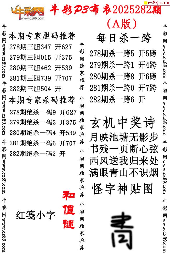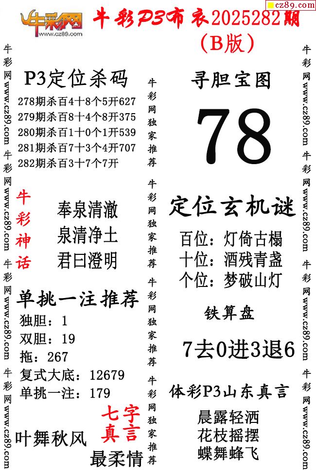 牛彩P3布衣25年282期AB版图谜(精华版)